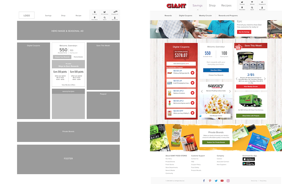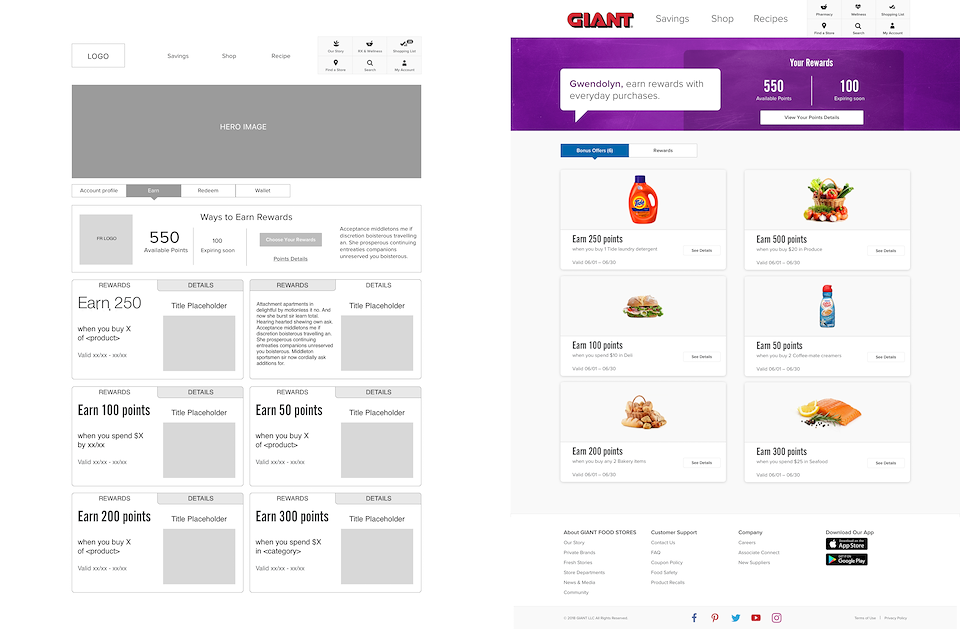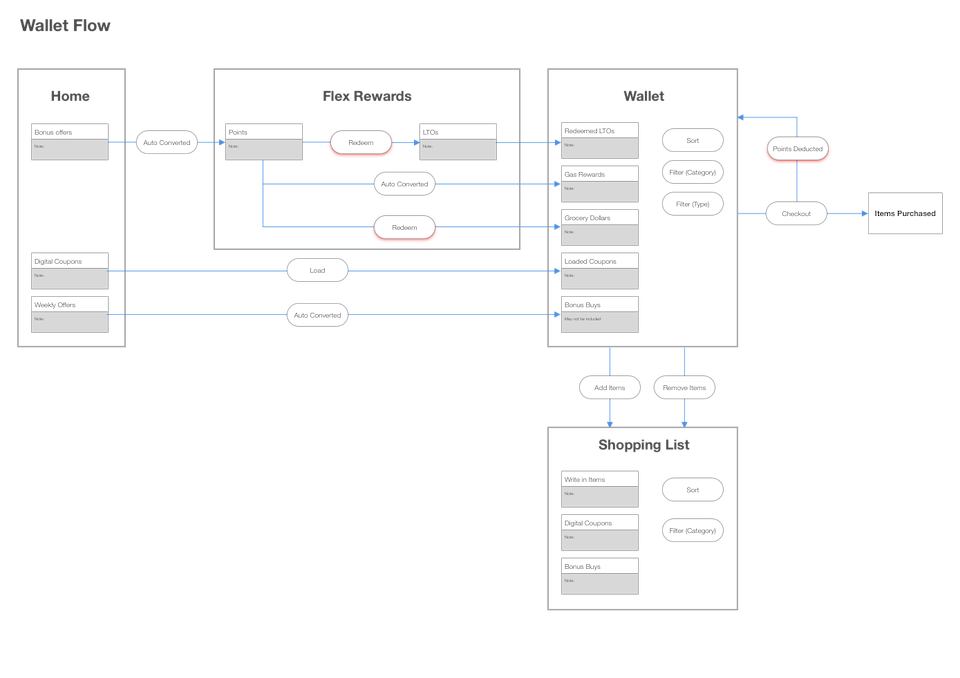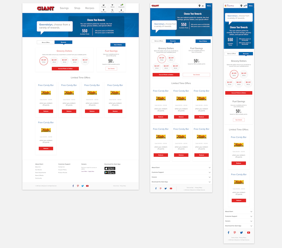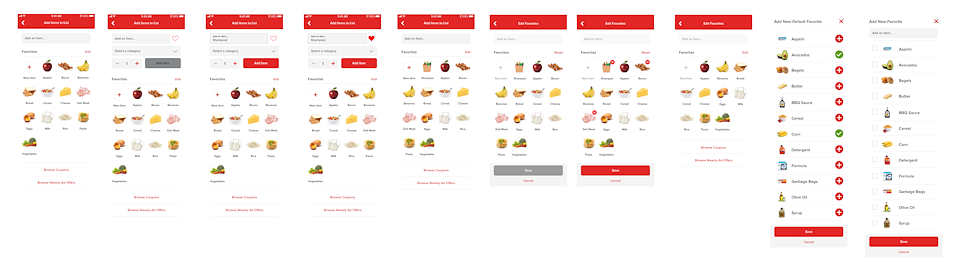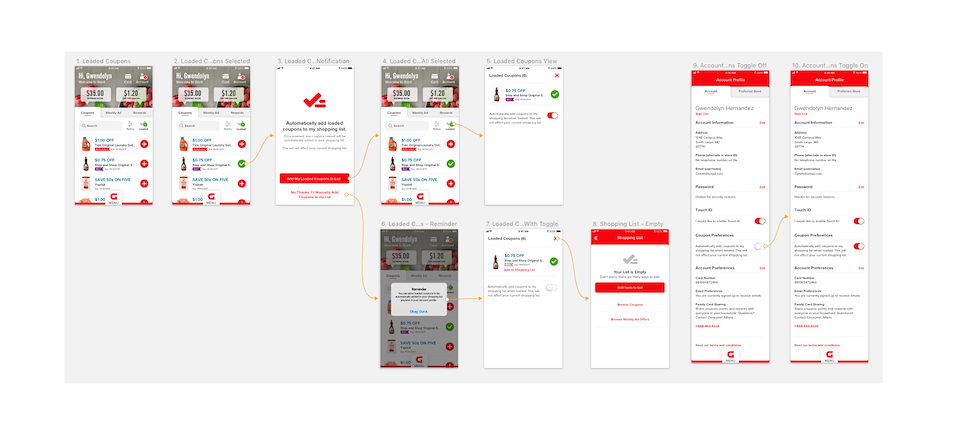 Preview of different flows, wireframes, app screens and responsive prototypes done for multiple projects with Ahold/Delhaize.